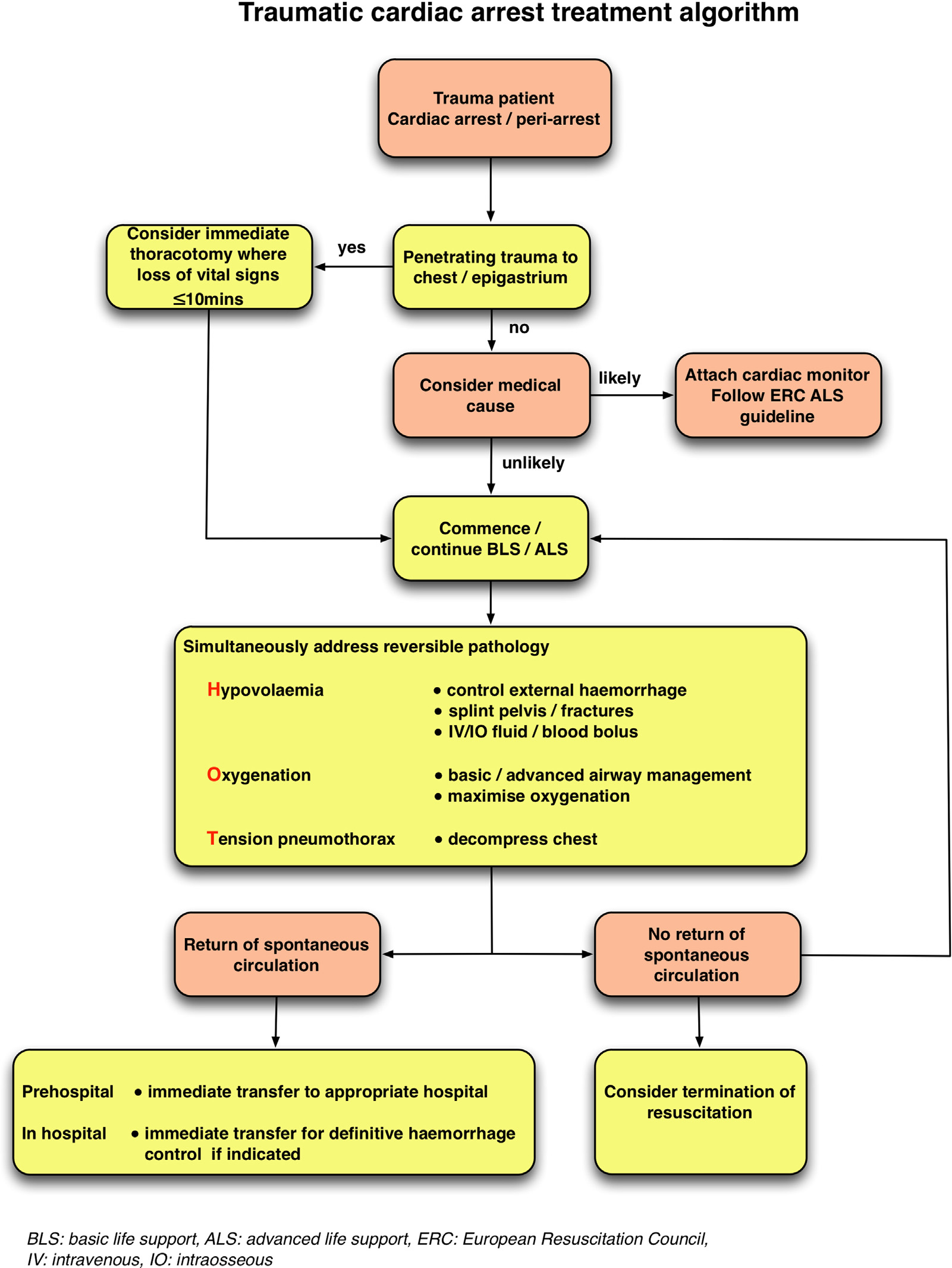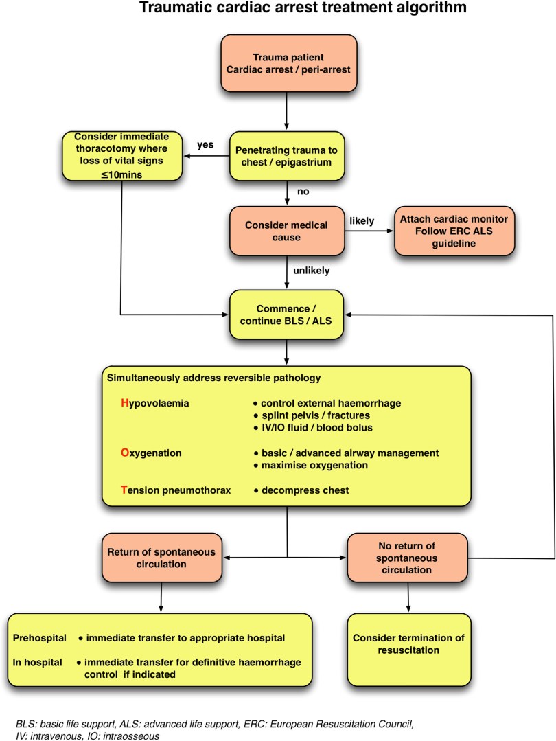 Algorithm for management of traumatic cardiac arrest